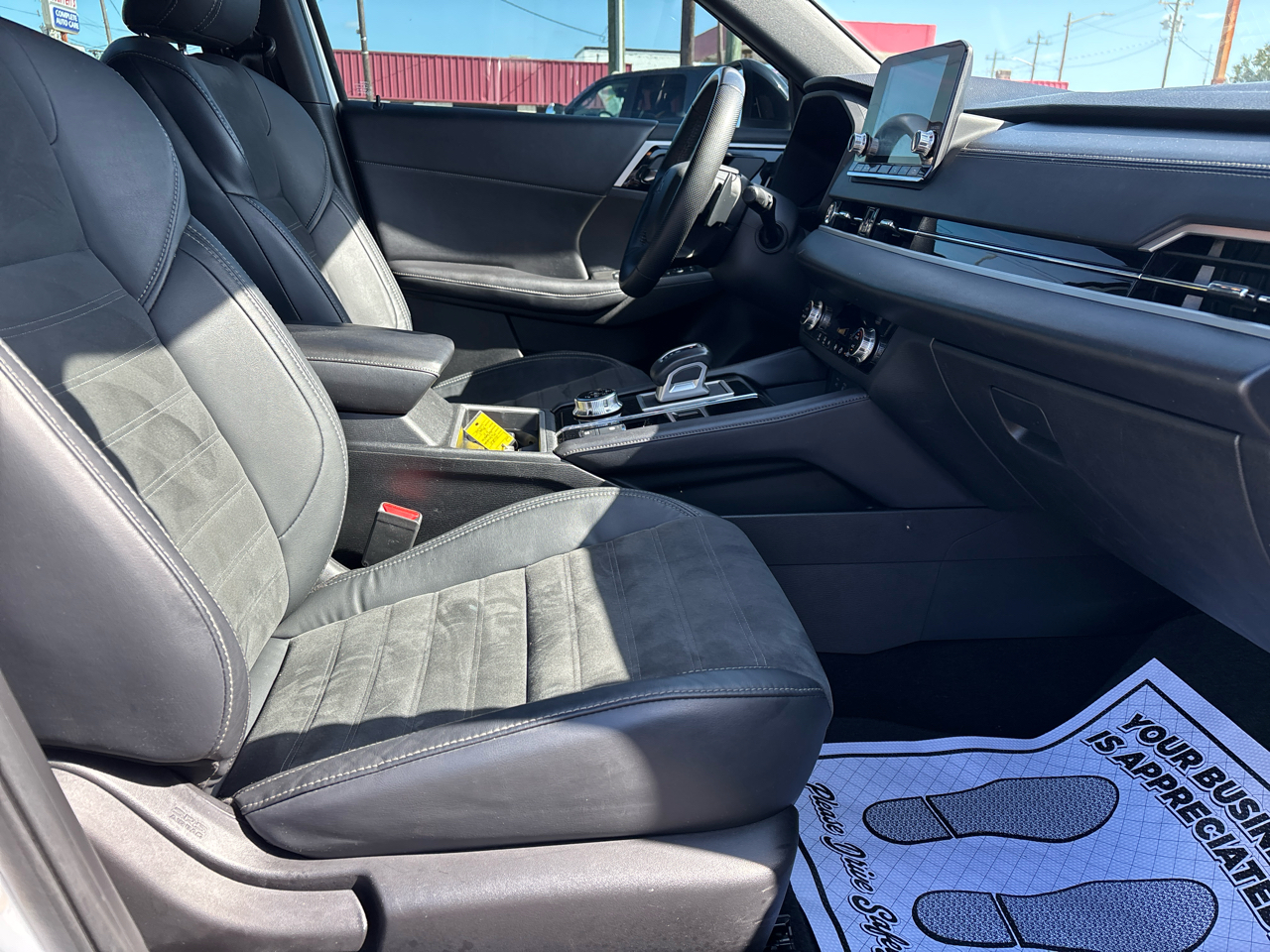 The exterior of the Outlander is both sporty and sophisticated, featuring body-colored bumpers, black wheel well trim, and sleek chrome accents. LED high-beam headlamps, fog lamps, and a bold black grille make a statement on the road. The 20-inch all-season tires provide a smooth and stable ride, while the speed-sensitive rain-detecting wipers ensure visibility in any weather condition.